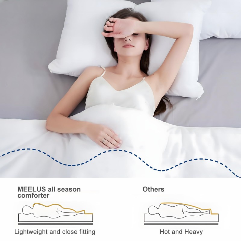 MEELUS Lightweight Comforter Cooling White, Soft Breathable Queen Size Warm Duvet Insert, Microfiber Summer Down Alternative All Season Quilt with Corner Tabs, 88x88 inch