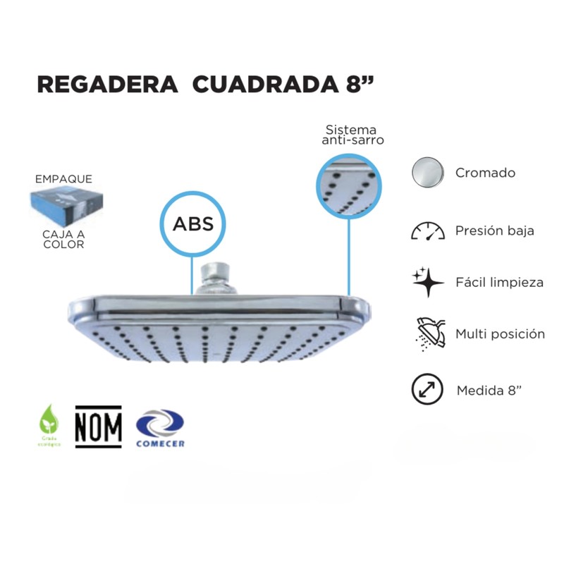 - 📏 Medida Perfecta de 8": La medida de 8 pulgadas ofrece una amplia cobertura de agua, proporcionando una ducha completa y relajante.