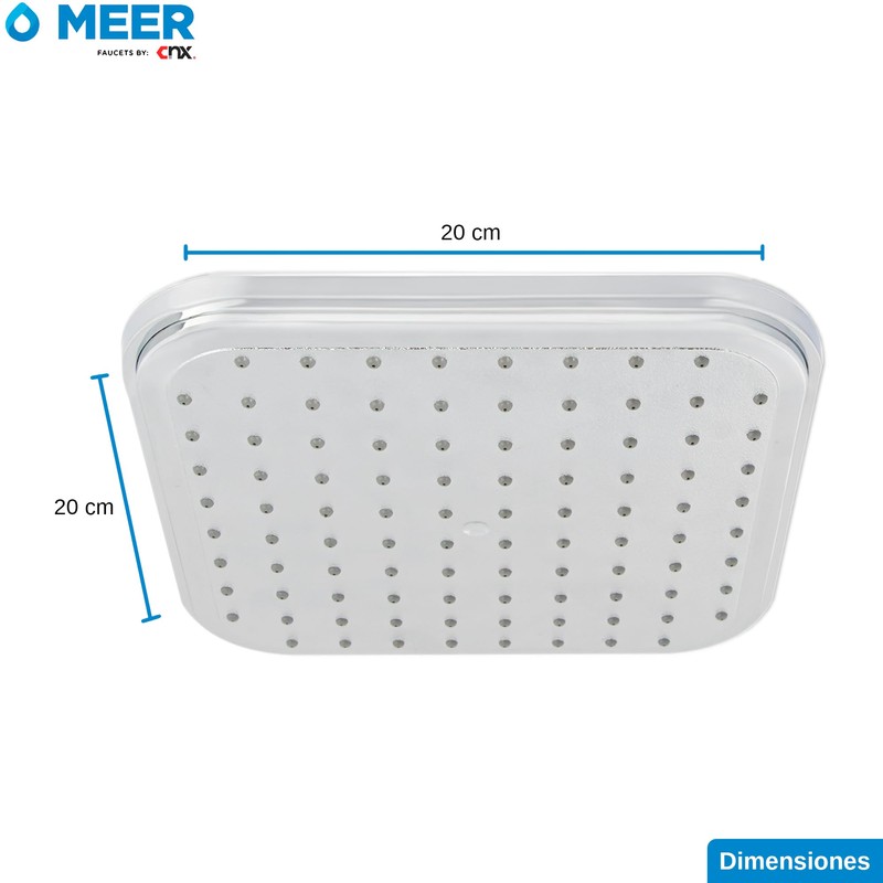 MEER Faucets by CNX | Cabezal de Ducha de Lluvia, Regadera Cuadrada de ABS Cromado 20 cm x 20 cm (8")