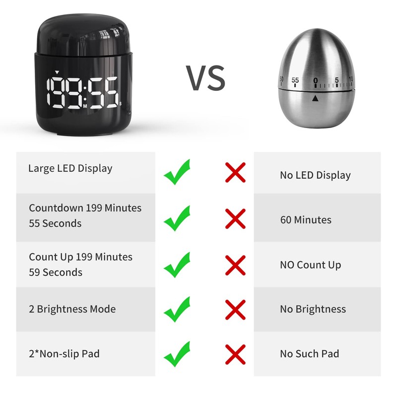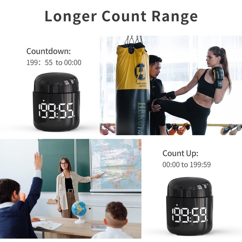 - 【Time Management】 Counting down from 199 minutes 55 seconds to zero, or as a stopwatch count up from 0 to 199:59.Fit for cooking, housework, fitness, game, yoga,classroom, meeting and other activities