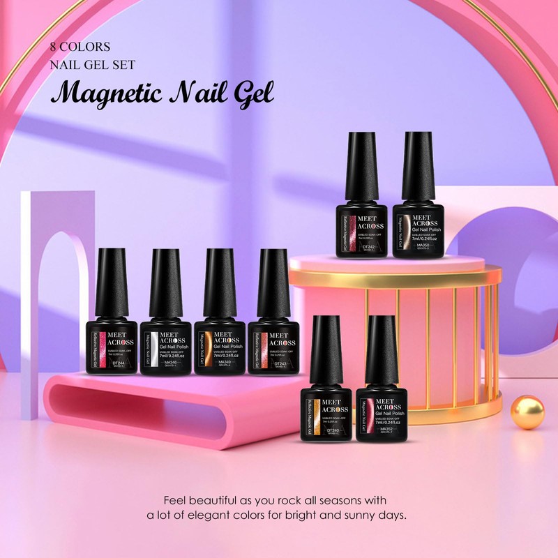 MEET ACROSS 8pcs Cat Eye Gel Nail Polish Set,Soak off UV LED Lamp Gel Nail Polish Cat Eye Gel Set (SET-3, 8pcs)