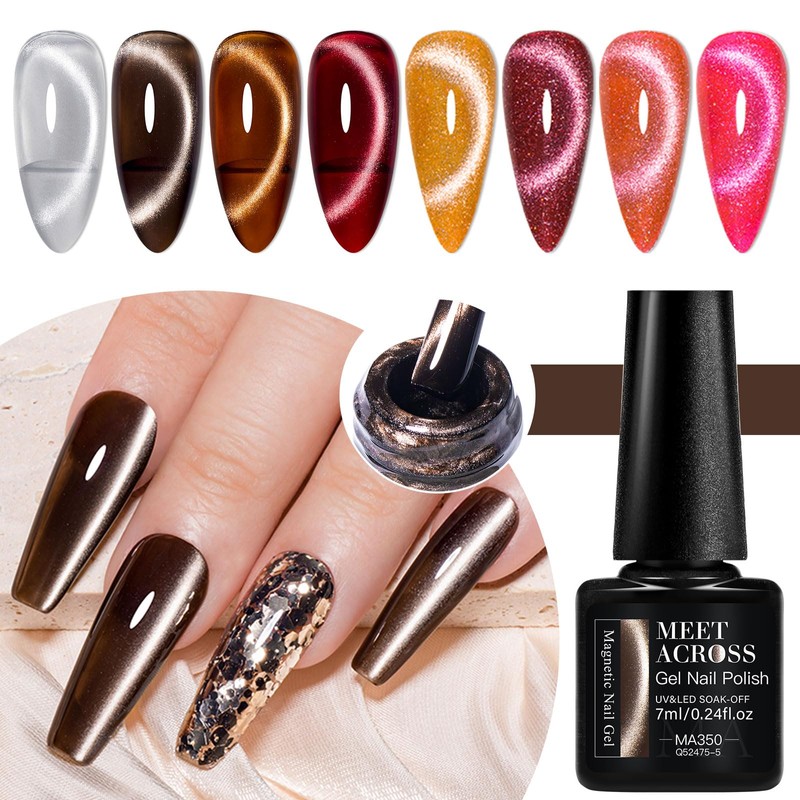 MEET ACROSS 8pcs Cat Eye Gel Nail Polish Set,Soak off UV LED Lamp Gel Nail Polish Cat Eye Gel Set (SET-3, 8pcs)