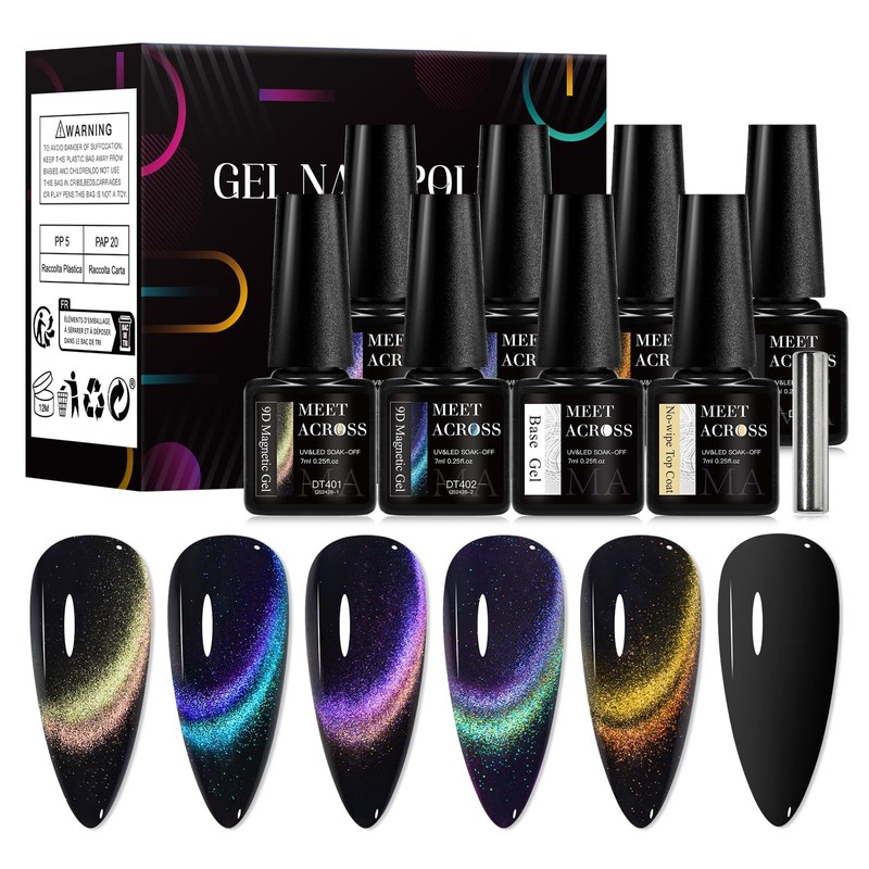 MEET ACROSS 9D Cat Eye Gel Nail Polish Set Magnetic Nail Polish 9PCS Chameleo...