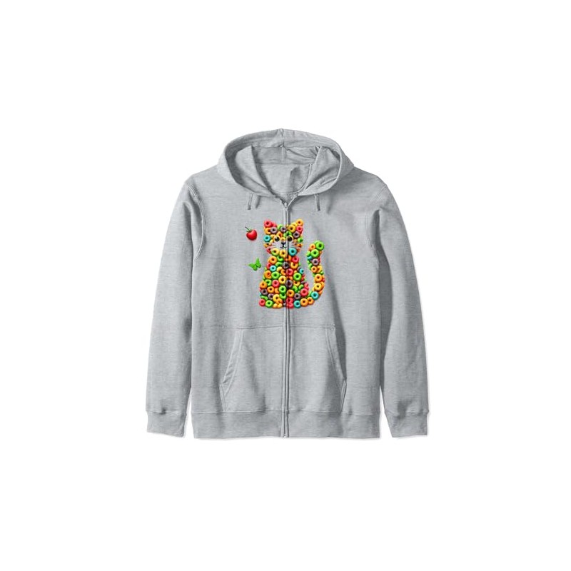 Meet the Fruit Loops Cat: Colourful and Cute Hooded Jacket, gray