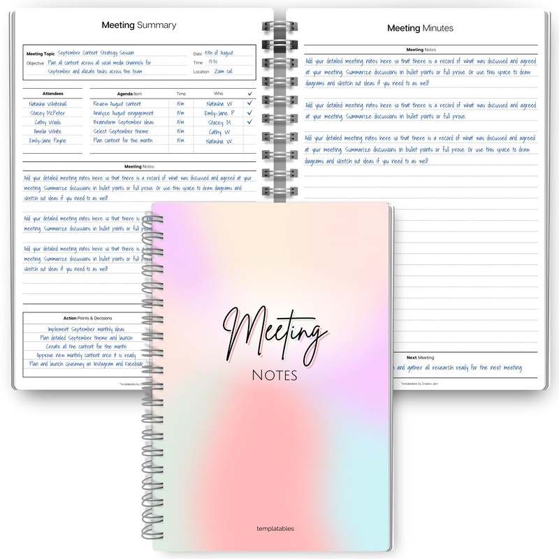Meeting Minutes Note Taking Professional Notebook | Plan, Record and Track Actions from all your Important Meetings - A5 Pastel Rainbow