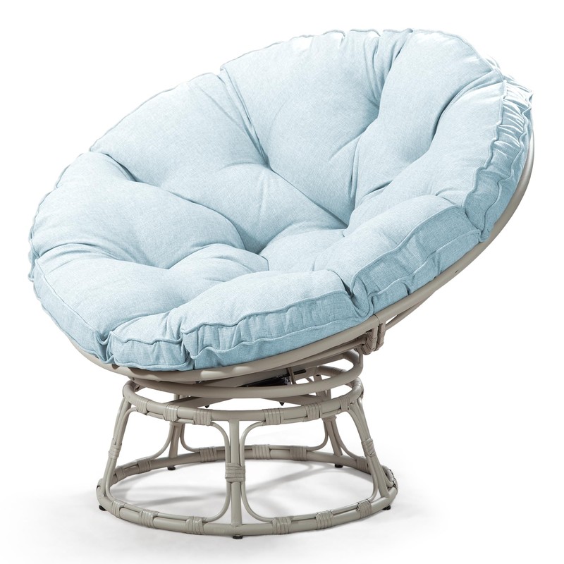 MeetLeisure 41" Papasan Chair with Cushion and 360 Degree Swivel Base, Papasan Lounge Chair with Cushion and Sturdy Frame, Large Saucer Chair, Circle Chair, Round Chair, Light Grey/Azure