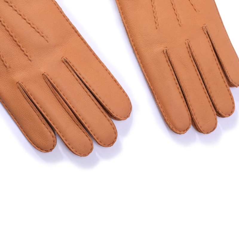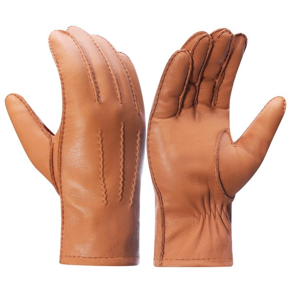 Meetoget⠀ Deerskin Leather Gloves For Men With Cashmere Lined For Winter Warmth USM04,Tan,Size M