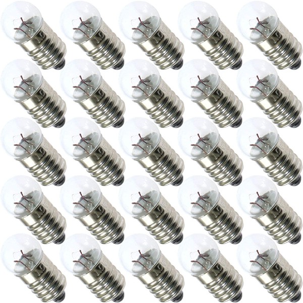 MEETOOT 25pcs E10 Mini Light Bulbs 1.5V 0.3A Physical Electrical Experiment Screw Base Indicator Light Incandescent Bulb Old-Fashioned Flashlight Lamp