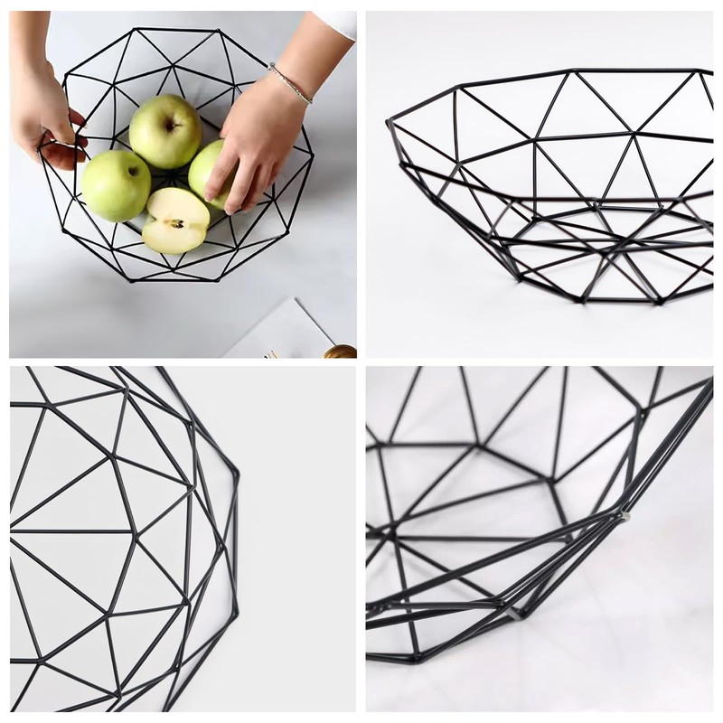 - Appearance:Black/Gold cast iron wire creative stylish countertop basket tray for serving colorful fruits, such as orange, pineapple, lemon, apple, banana, lime, also as storage bread, dry pots, office supplies, cup, cake, snacks, eggs, candy, towels container, even be filled with decorative dried potpourri to add a natural element to breakfast table