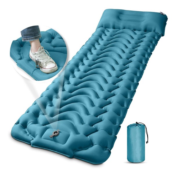MEETPEAK Camping Sleeping Mat, Inflatable Sleeping Pad Foot Press Lightweight Camping Pad for Backpacking Hiking Traveling, Durable Waterproof Air Mattress Compact Camp Pad Thickness 4 Inch