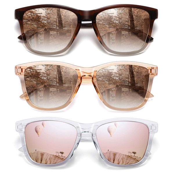 MEETSUN Polarized Sunglasses for Women Men Trendy Classic Retro Designer Style Fashion UV400 Protection, 3 Pack Brown Gradient + Light Brown + Pink Mirrored, Medium
