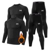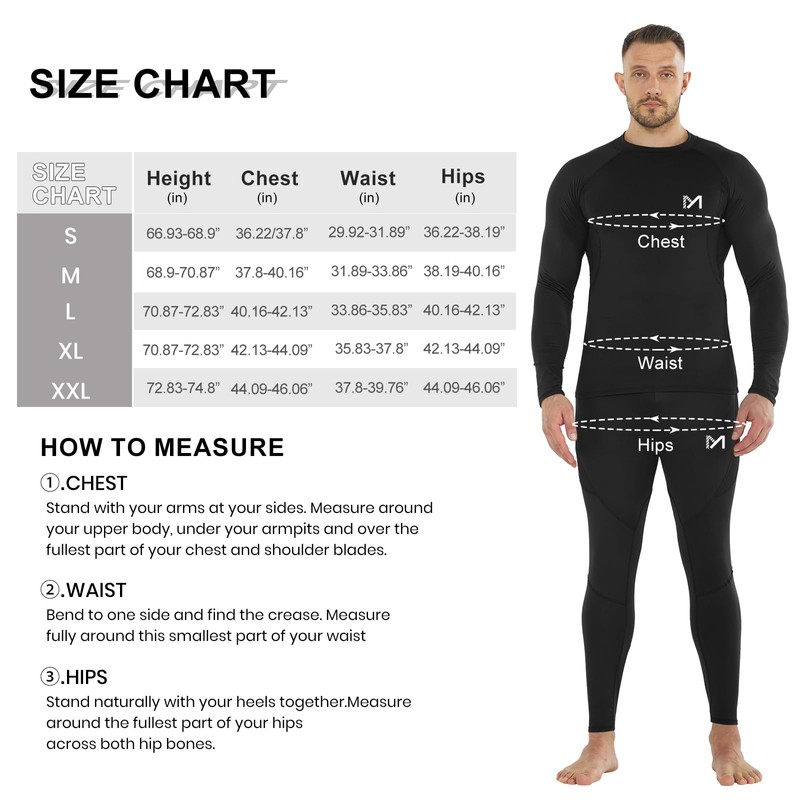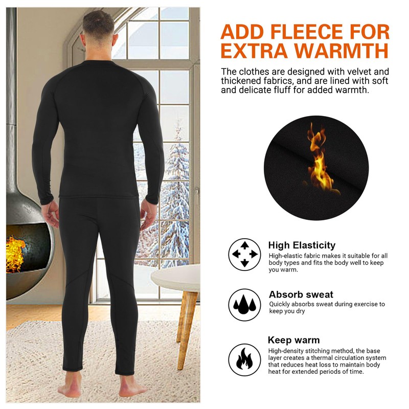 • [Excellent Flexibility For Any Movement] The men’s thermal clothing is designed with four way stretch compression for your freedom of outdoor activities, never have bound feeling. Flat lock will prevent chafing and irritation of skin. Ignore the size chart provided by amazon, check the size chart of the last picture to select the appropriate size *The set is designed for outdoor sports, there is NO OPEN FLYING on the pants*