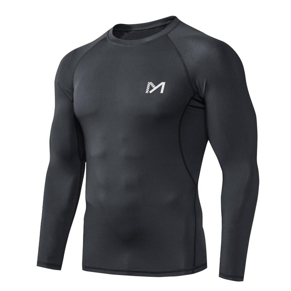 MEETYOO Mens Compression Long Sleeve Athletic Workout Undershirt, Black, Large US