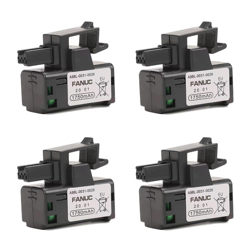 Meewellvetry 4-Pack FANUC A98L-0031-0026 3V 1750mAh Lithium Battery 3P Plug Replacement for A98L-0031-0026 A02B-0309-K102