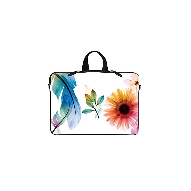 Meffort Inc 17 17.3 inch Flower Leaves Design Hidden Handle Laptop Sleeve Bag Carrying Case with D Ring Hook Eyelets