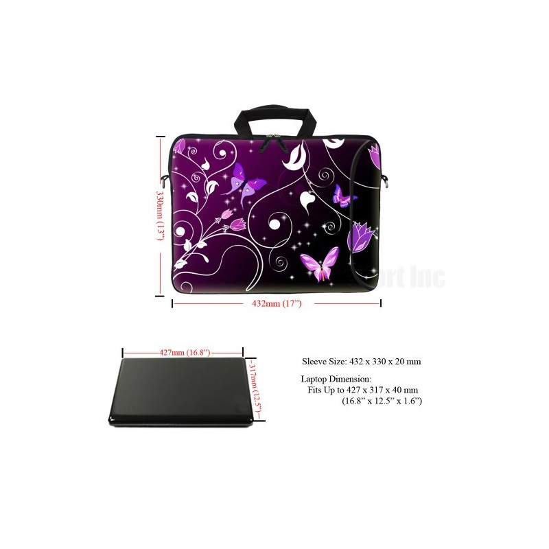 Meffort Inc® 17 17.3 Inch Laptop Carrying Sleeve Bag Case with Extra Side Pocket, Soft Carrying Handle and Removable Shoulder Strap/Notebook Bag Case - Purple Swirl Butterfly Flower