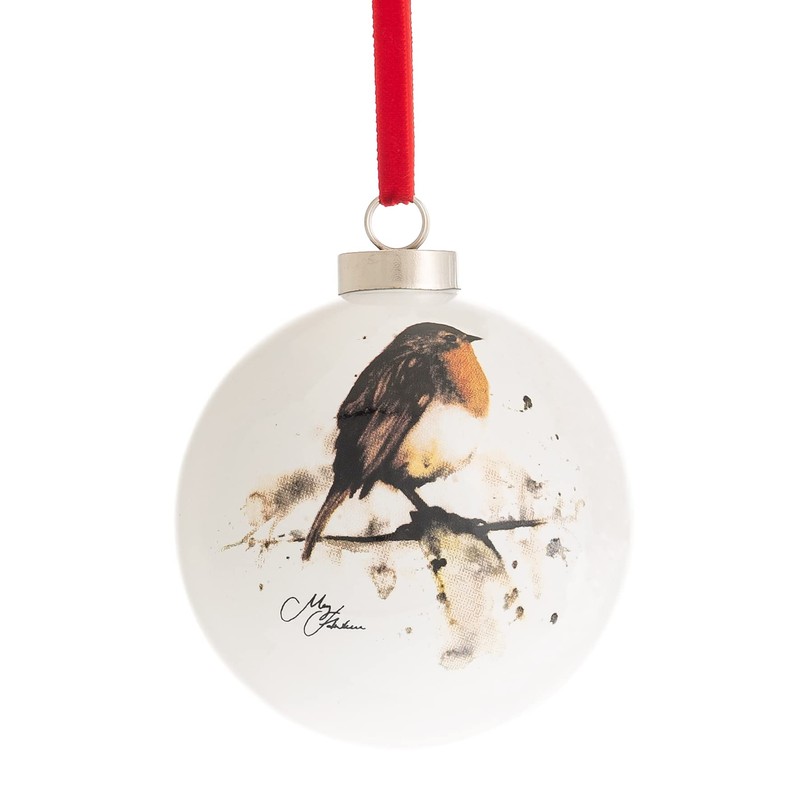 Meg Hawkins Ceramic Christmas Bauble 8cm - Robin