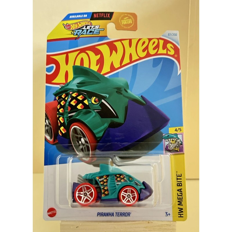 This limited edition Hot Wheels car is a must-have for any collector or fan of the Let's Race Netflix series. The 2024 Green Piranha Terror #87 from the Hot Wheels Mega Bite series is a 1:64 scale diecast car that will impress with its intricate details and vibrant green color. The vehicle make is Hot Wheels and the model is Piranha Terror, making it a perfect addition to any Hot Wheels collection.