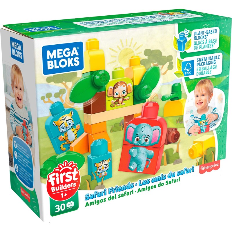 Mega Bloks First Builders Safari Friends with Big Building Blocks, Plant-Based Building Toys for Toddlers (30 Pieces)