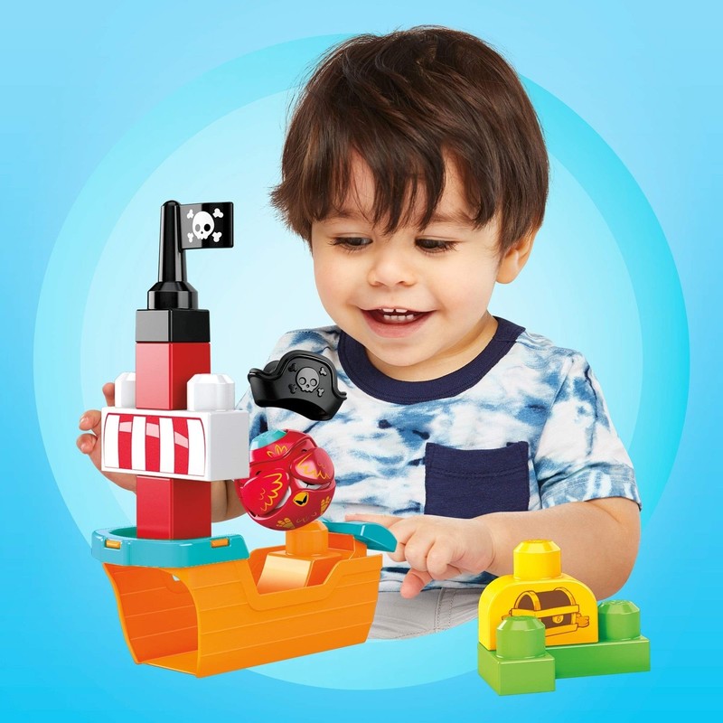 Mega Bloks GRV34 Peep-Peep Pirate Ship, Construction Set with 1 Peep-Peep Animal, 1 Ship, 7 Large, Robust Building Blocks and Accessories, Play Set from 1 Year