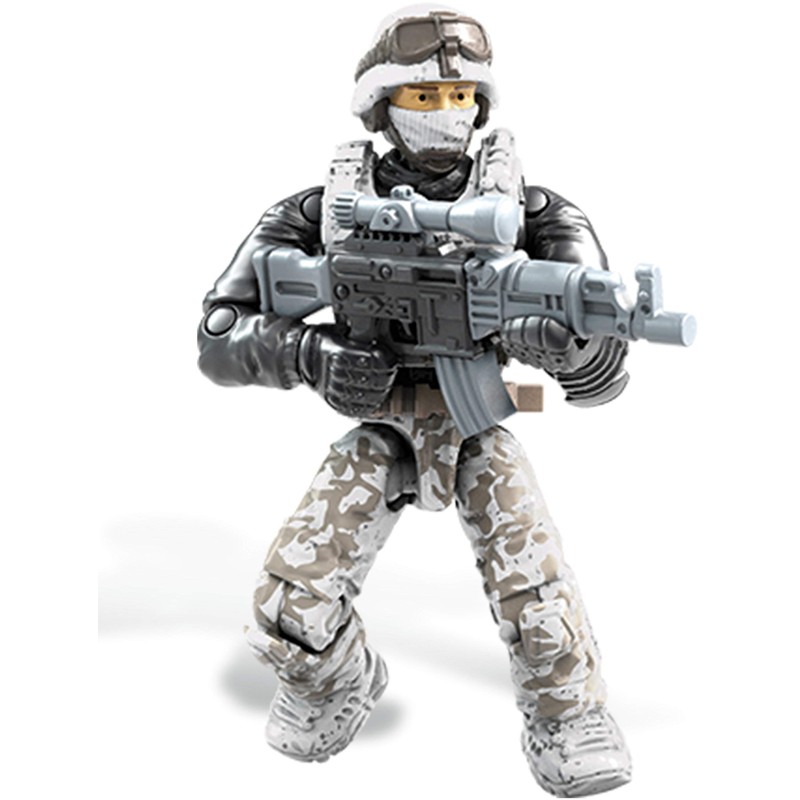 - 1 authentically detailed, highly articulated arctic soldier micro action figure with detachable armor and weapon accessories including 3 assault rifles and 1 sniper rifle