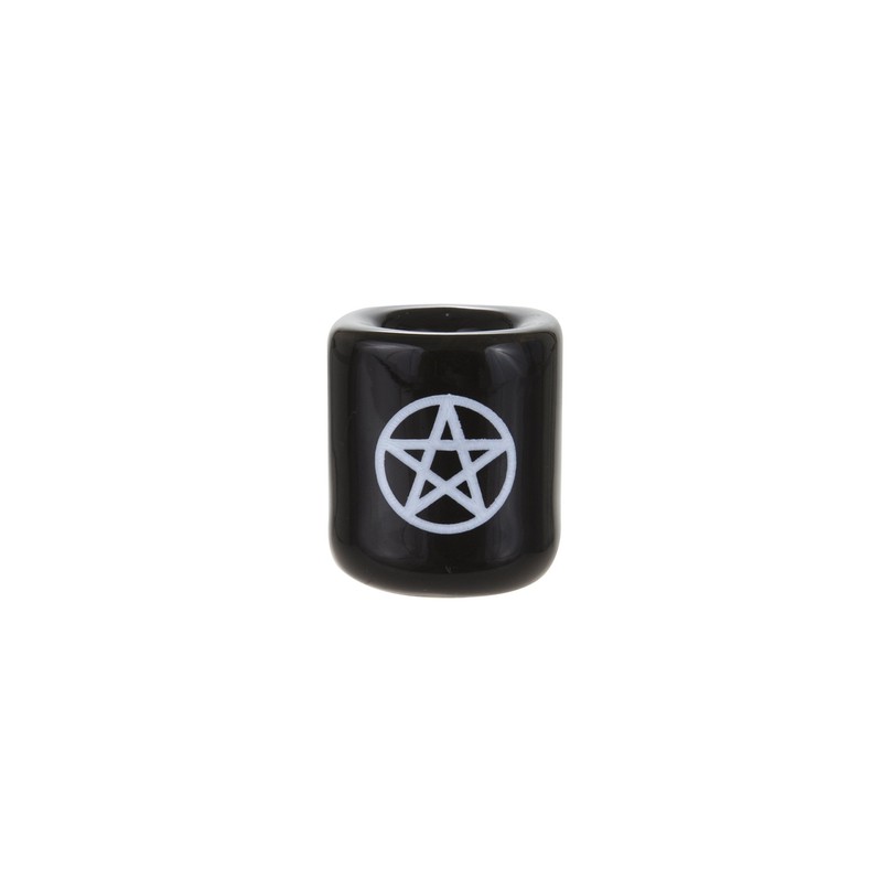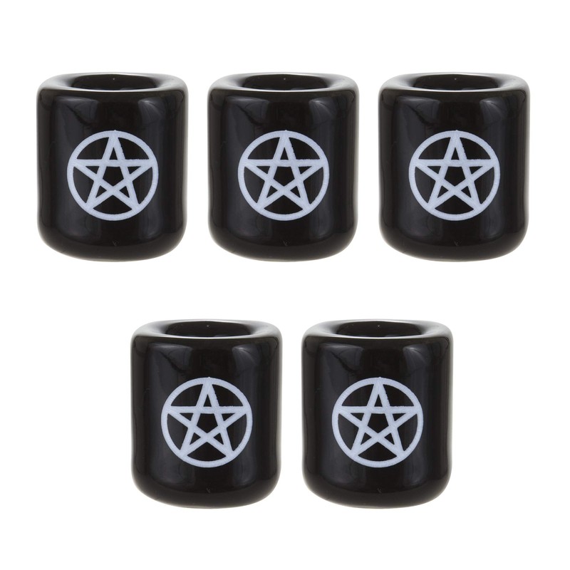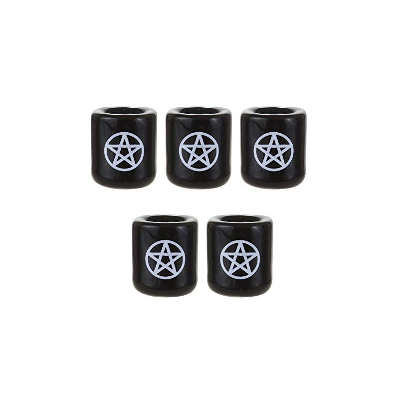 Mega Candles - 5 pcs Ceramic White Pentacle Chime Ritual Spell Candle Holder - Black