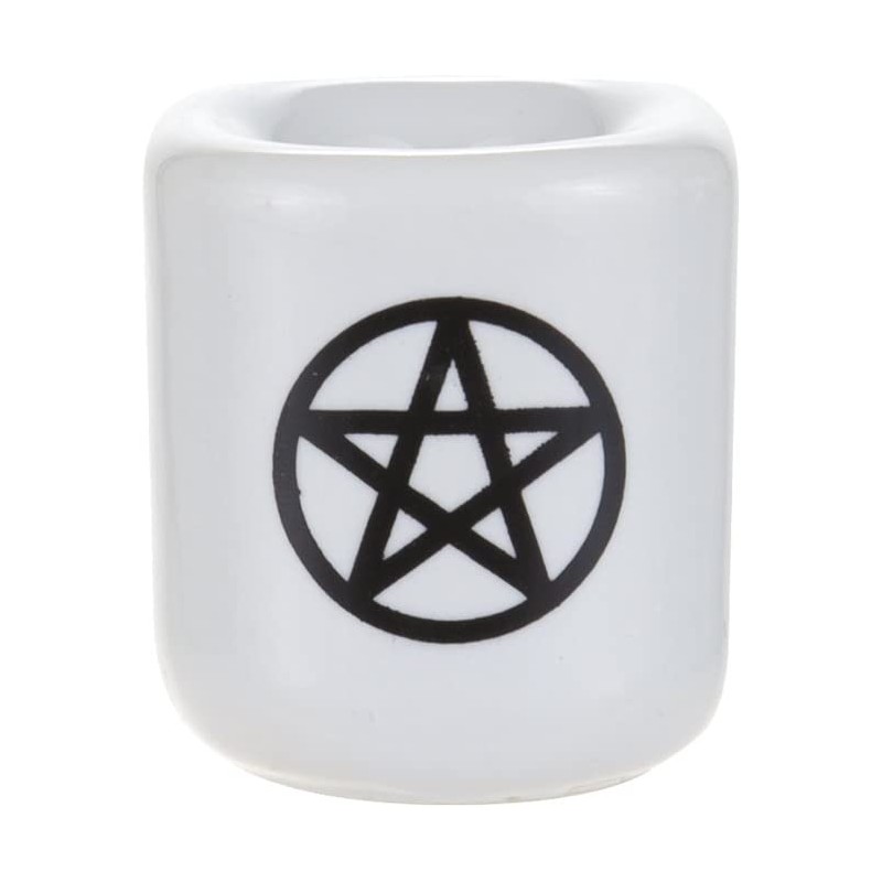 Mega Candles 6 pcs Ceramic Black Pentacle Chime Ritual Spell on White Candle Holder, Great for Casting Chimes, Rituals, Spells, Vigil, Witchcraft, Wiccan Supplies & More