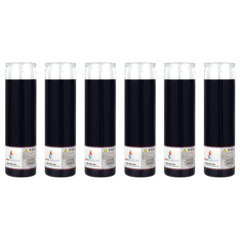 Mega Candles 6 pcs Unscented Black 7 Day Devotional Prayer Glass Container Candle, Premium Palm Wax Candles 2 Inch x 8 Inch, Ideal for Sanctuary, Vigils, Prayers, Blessing, Religious & Remembrance
