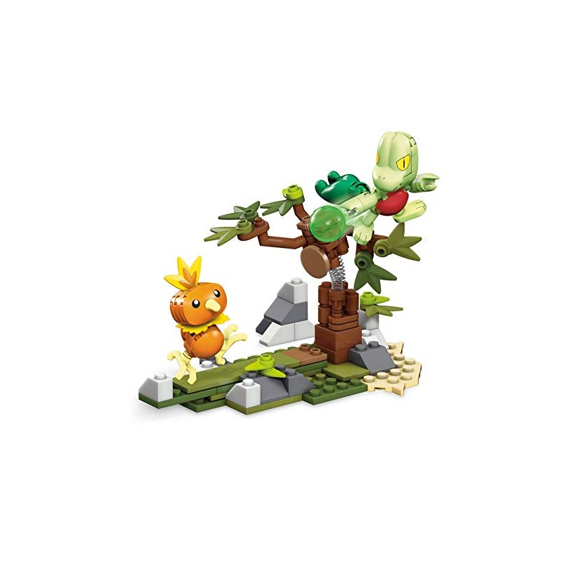 - MEGA CONSTRUX: Tip the scales in battle when Torchic takes on Treecko!