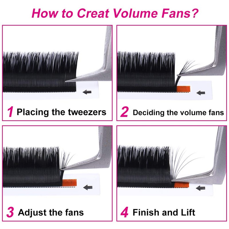 1. Easy fan volume lashes:1-second blooming lashes that blossom automatically in one second. Even beginning lash artists can also try to make easy fan lashes by themselves without any professional skill. Free to make as 2D to 10D as you want.