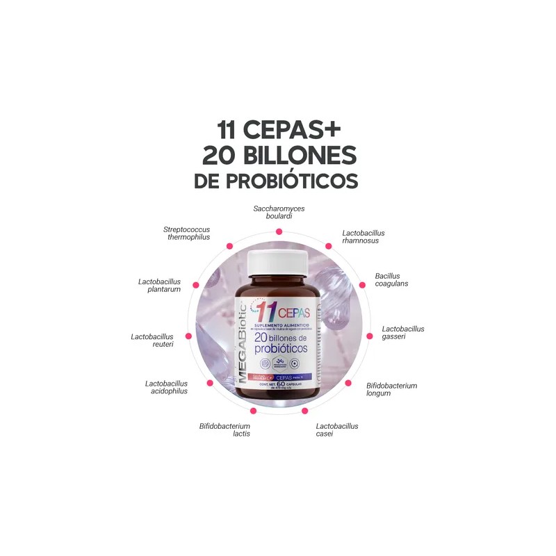 Megabiotic 11 Cepas 20 Billones De Probióticos 60 Cápsulas Sin sabor