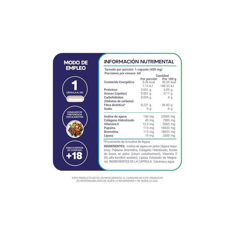 MegaBiotic - MegaBiotic Enzimas | 60 Cápsulas 1 por día | Papaína, Bromelina, Lipasa, Colágeno e Inulina de Agave | Suplementos Alimenticios | 60 Porciones por Envase. 💯 Autenticidad y máxima durabilidad comprobadas. Diseño ergonómico y funcionalidad excepcional. 🔥 Alta demanda - Stock limitado. Ideal para quienes buscan lo mejor en calidad y estilo. Producto auténtico con satisfacción total asegurada. ¡No te quedes sin el tuyo y aprovecha esta oportunidad única!