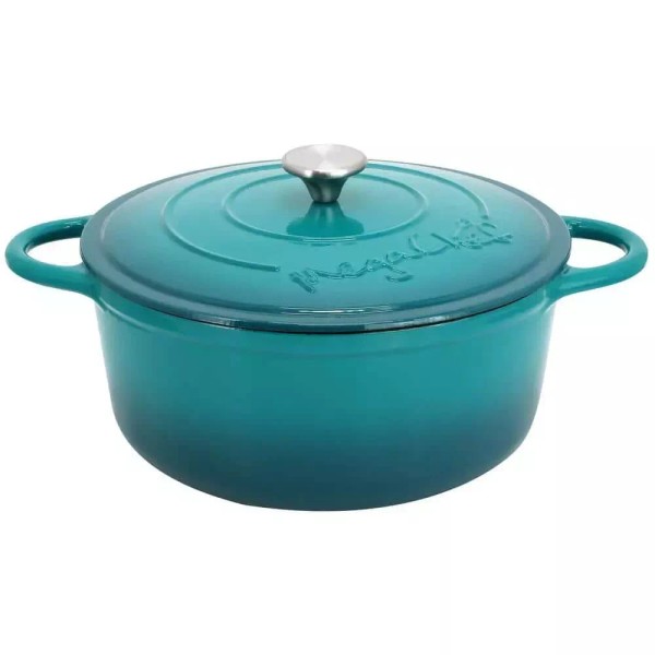 MegaChef 6.35 Qt Round Enameled Cast Iron Dutch Oven Self Basting Lid in Teal