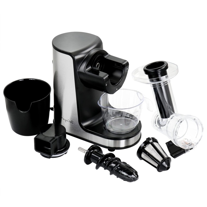 Megachef Masticating Slow Juicer Extractor with Reverse Function, Cold Press Juicer Machine with Quiet Motor, Chrome Silver