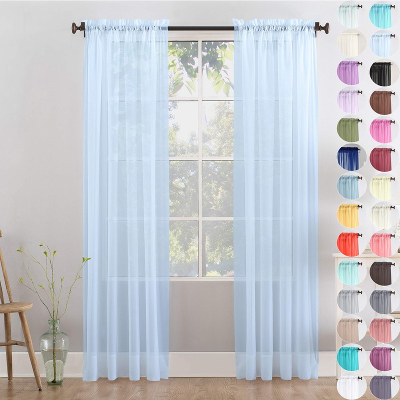 Megachest a pair of slot top voile curtains (Baby Blue, 56" wideX72 drop 2 Panels)