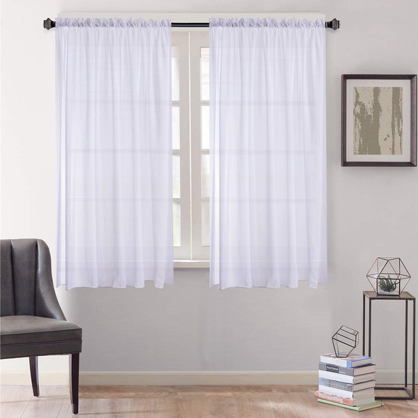 Megachest cotton look voile sheer slot top curtain a pair (cotton-look snow white, 56" wideX48 drop)