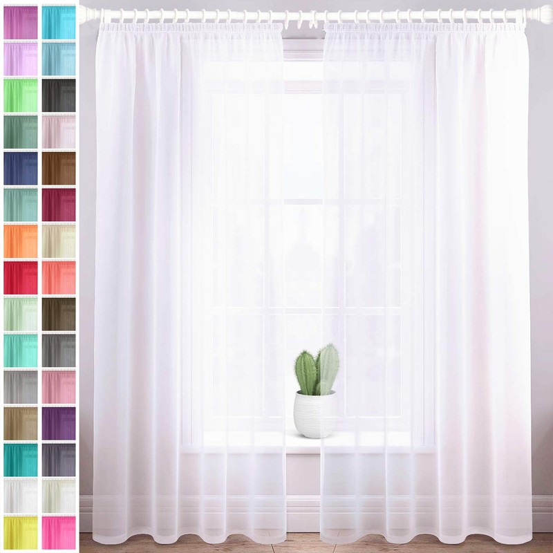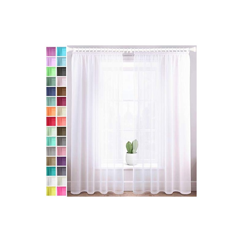 Megachest gathering tape voile curtain(Pure White W 56" x L 108" (2 Panels))