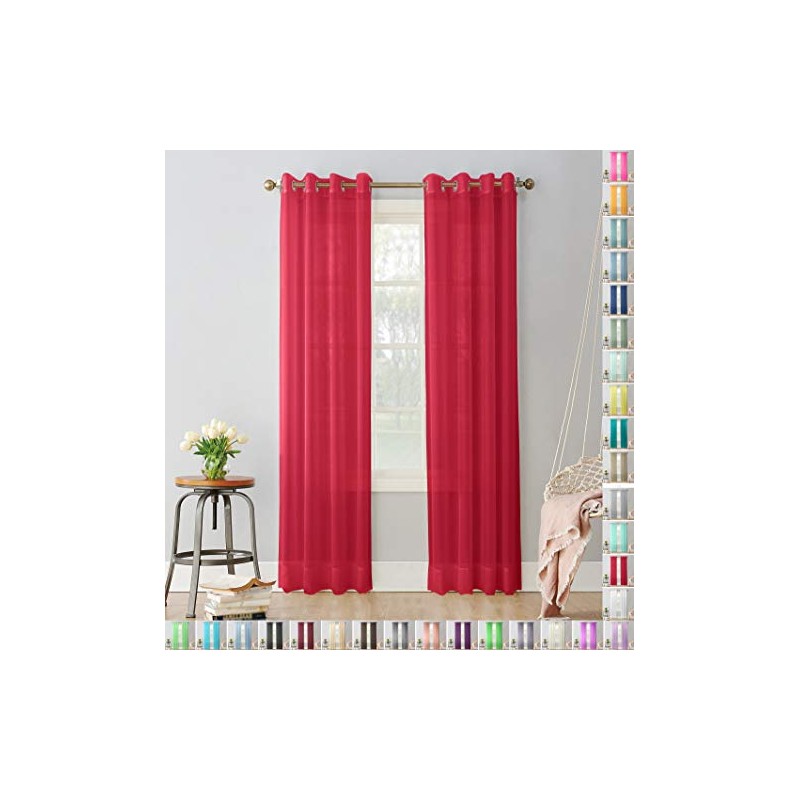 Megachest pair of sheer voile RING top (red, 56" wideX90 drop(W142cmXH228.5cm))