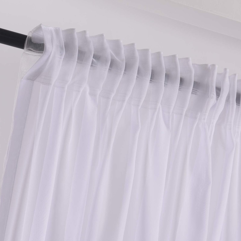 • pure white sheer voile curtain with multi way to use tape at the top.