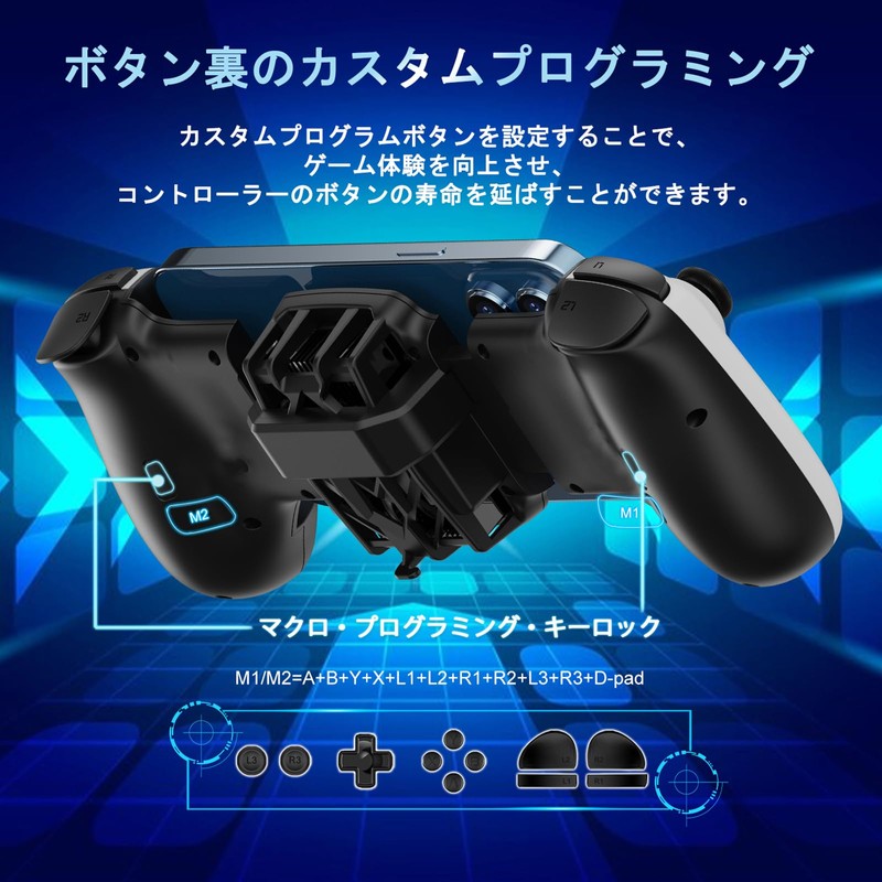 - Δ [Adjust Turbo and M1/M2 Macro Functions] This iOS gamepad has 3 turbo speeds to adjust the speed according to your gaming needs (7/10/30 times/sec)