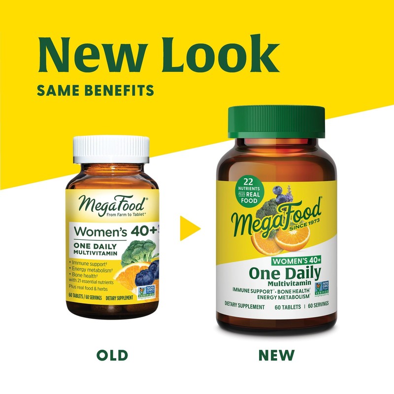 MegaFood Women's 40+ One Daily Multivitamin for Women - with Vitamin B12, B6, C, D, Zinc & Iron – Plus Real Food - Immune Support - Bone Health - Non-GMO - Vegetarian - 30 Tabs