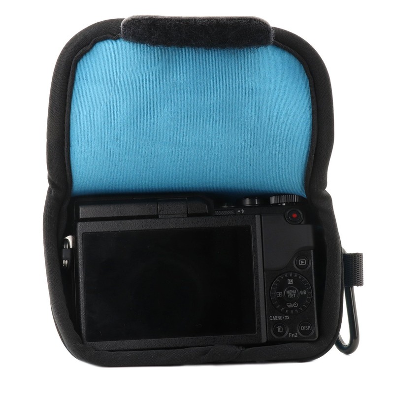 - Quick and practical – equipped with a robust carabiner, you can attach your camera to a backpack, belt or waistband to quickly and comfortably grab the camera if necessary. The neoprene material is elastic, lightweight and space-saving. This makes it a perfect companion for on the go.