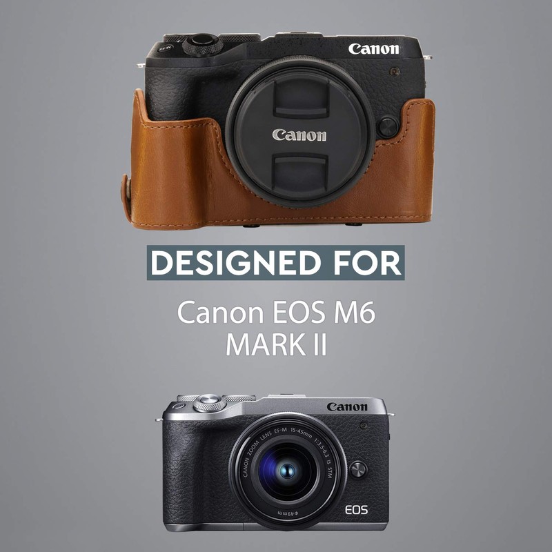 - BESPOKE FIT – The MegaGear Leather Camera Case with Battery Access is specifically tailored using high-quality leather for the Canon EOS M6 Mark II (15-45mm) models for precision fit and coverage.