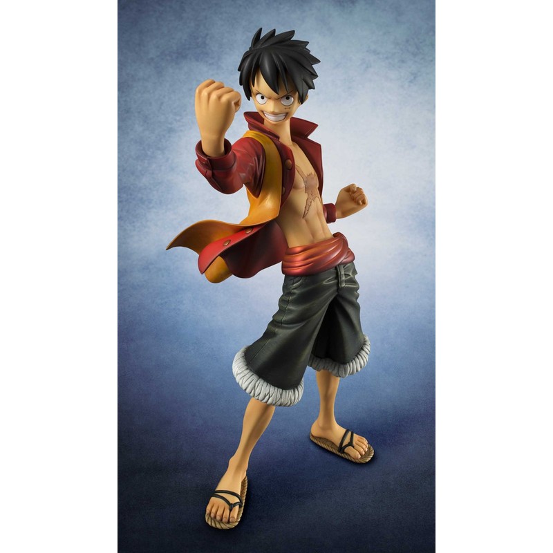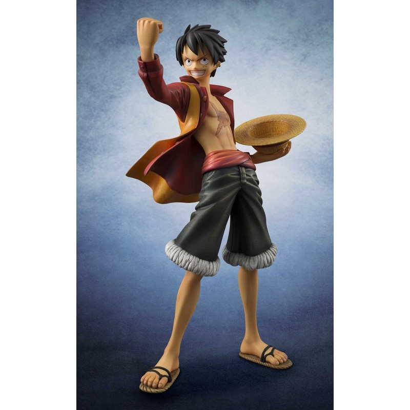 From Mega House. The captain of the Straw Hat Pirates prepares for adventure in this spectacular figure, whose coat can be removed! Based on One Piece Film Z, the One Piece Portrait of Pirates (P.O.P.) Luffy model is made of PVC at 1/7-scale.