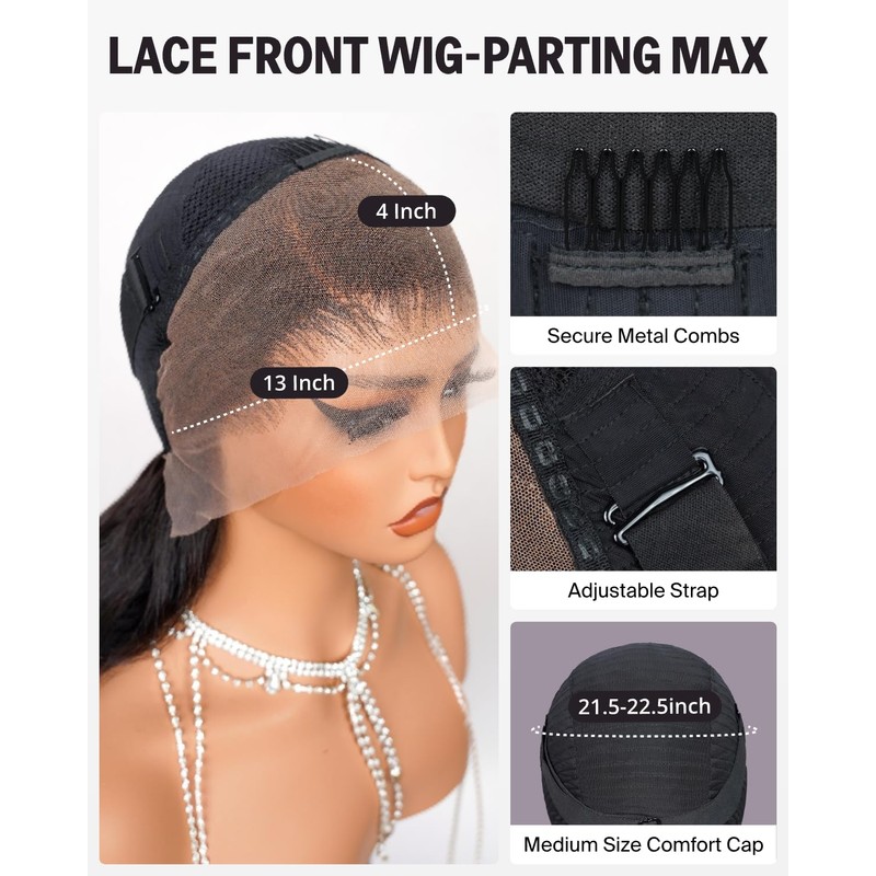 - Frontal wig Lace Front Wigs Human Hair: Advanced pre-bleached invisible knots technology, real pre-plucked and tiny knots for natural-looking hairline. Wig cap: (21.5-22.5 inch), equiped adjustable elastic band and combs for a secure fit. Creating a comfortable and natural all day wearing experience