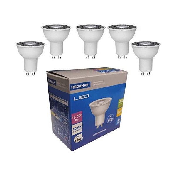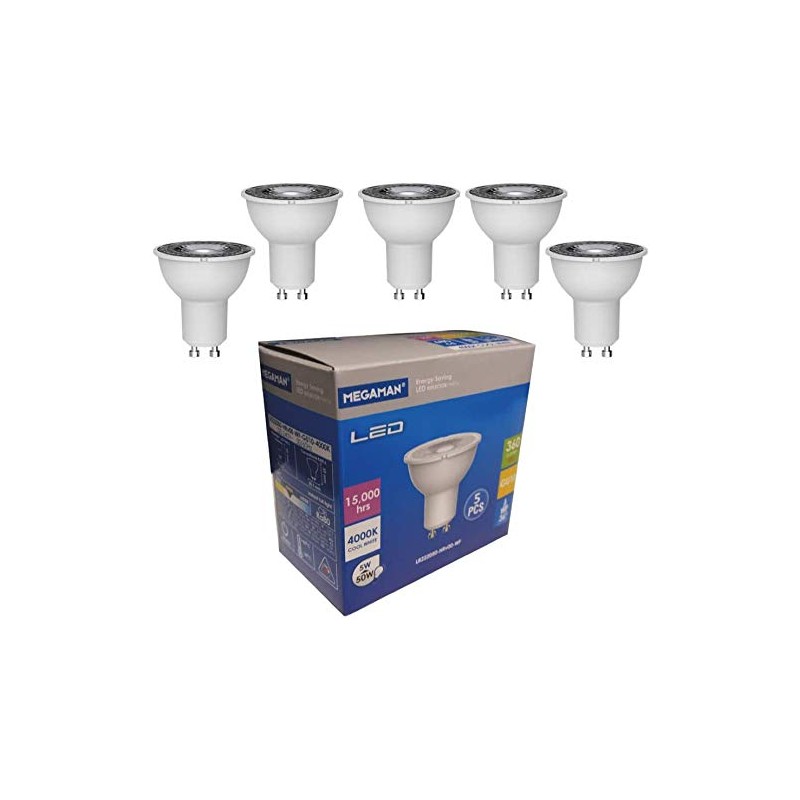 Megaman 5w LED GU10 PAR16 Lamp 5 Pack 36 Degree Kitchen Spotlight 710390 A+ (4000k cool white)
