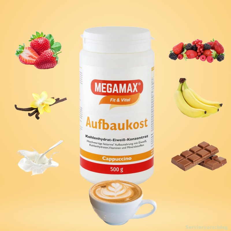 - Made in Germany The Megamax carbohydrate protein concentrate is suitable as an additional food: For weight gain, muscle building, physical and mental performance, physical stress, nutrient deficiency in old age and ideal for recovery periods after medical treatments
