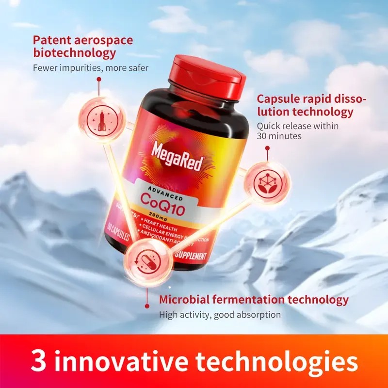 MegaRed Health High-content Coenzyme Q10 Soft Capsule for Staying Up Late to Protect Heart and Myocardium 200mg*90 Pills/60Pills/30Pills Fathersdaygift Supplement Edible Vitamin Healthcare Dietary