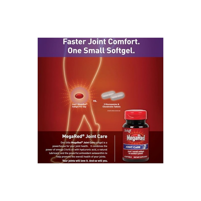 MegaRed Joint Care Suplemento para juntas de cido hialurnico y astaxantina Omega 3 Krill Oil, 120 Count (2 Bottles)