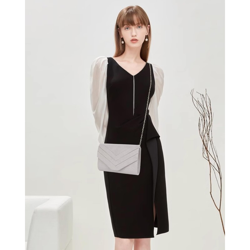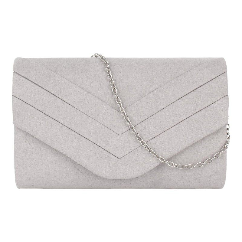 MEGAUK Women's Clutch Elegant Evening Bag Suede Handbag Envelope Bag Clutch Bag with Chain for Wedding Prom Party, 07078 Light Grey